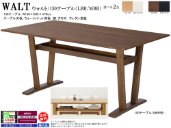 ■「ウォルト」テーブルは、150cm幅・棚板付、LBR・MBR色の2色です。