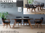 ・耐熱・防水・耐摩耗性に優れたセラミック天板の150双脚テーブルとローバック肘付チェア4脚の組合せです。