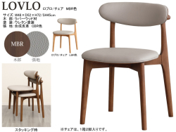 ・チェアは、木部:ラバーウッド材LBR・MBR色、ウレタン塗装、張地:合成皮革、LGY色(LBR)・CBR色(MBR)です。