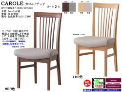 ・チェアは、木部:ラバーウッド材・ウレタン塗装、張地:合成皮革、LGY色(LBR)・CBR色(MBR)です。
