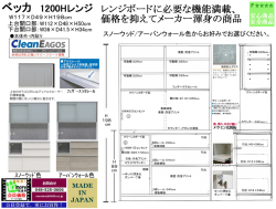 レンジボード □「ベッカ」1200Hレンジ ■198cm高のお手頃高機能レンジボード ・国内最高環境安全基準F☆☆☆☆素材を使用、安心安全です。 ・二段重ね、飛散防止フイルム貼・ゆっくり閉まる引戸4mm厚ガラス ・開口部天井:吸湿素材クリーンSボードで大型スチームオーブン対応 ■メーカー高品質価格戦略商品シリーズ ・MADE IN JAPAN 【基本仕様】 ・サイズ:W117×D49×H198cm ・国内最高環境安全基準F☆☆☆☆素材を使用 ・本体:擦り傷・汚れに強い「クリーンイーゴス」を使用 ・前面:選べるスノーウッド・アーバンウォール色の2色 ・上下台開口部天井:吸湿素材「クリーンSボード」を使用 ・上台引戸:4ミリ厚ガラス・飛散防止フイルム貼り、デュアルクローザー付 ・アルミフェザーレールに車付扉でスムーズな動き ・上台棚板:大皿も入る奥行29cmの可動棚板2枚入り ・上台開口部は、大型スチームオーブンレンジ使用に対応 ・上台開口部は、左側面に2口1500Wコンセント付 ・上台開口部:W112×D48×H50cm ・下段開口部は、ポリ合板天板の3段引スライドテーブル付 ・下台開口部は、左側面に1口1500Wコンセント付 ・下段引出:ペットボトルも入る大型引出、3段スライドレール付 ・下台左開口部:W36×D41.5×H34cm ◆ご注意 ・床の凹凸にご注意ください。 ・本体が歪み扉に隙間があくことがあります。 ・本体が平らになるように設置してください。 ・送料無料(北海道・沖縄・離島除く)でお届けします。 ・大型家具の配送は、基本として開梱設置込価格です。 ・下記の区域内では、開梱設置込みの価格でご提供です。 ・本州全域、四国、沖縄を除く九州全域。 ・離島と一部山間地は、対応できない区域も有ります。 ・上記の区域外のお客様を含め、お問合せをお願いします。 ・ご使用のモニターにより、多少色が違って見える事があります。 |