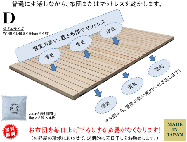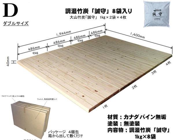 ・スノコ:カナダ産パイン無垢材、無塗装(湿気を吸収します)