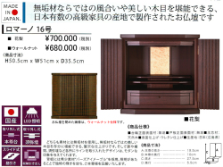 【卓上型お仏壇】「ロマーノ 16号」 今の和洋住宅の雰囲気にあう高級無垢材、モダンデザインの51cm幅卓上型、無垢材の存在感を感じる花梨色・ウォールナット色2色の安心安全な国産高級お仏壇です。
