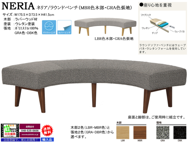 ・ラウンドベンチ:ファブリック、GRA・DBK色、木部2色