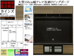 ■光沢のあるハイグロス表面材・大型TV収納のW155cm収納ボード