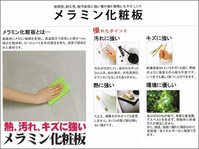 ・カウンターは、メラミン化粧合板仕様